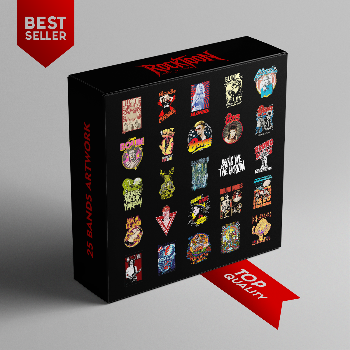 25 Rock Stars Band Series Mega Bundle such as blondie, david bowie, bring me the horizon, bruno mars, chris cornell, dead and company, grateful dead, def leppard, debbie harry, space invader, dark star jubilee, the dead, music posters, vintage music art, classic rock, glam rock, punk rock, pop icons, alternative metal, rock legends, digital band art, wall decor music, band poster set, tour posters, 70s rock and many more. This Designs For DTF Sublimation And Your Own POD | All Popular Band and High Quality Image | RARE & Best Quality